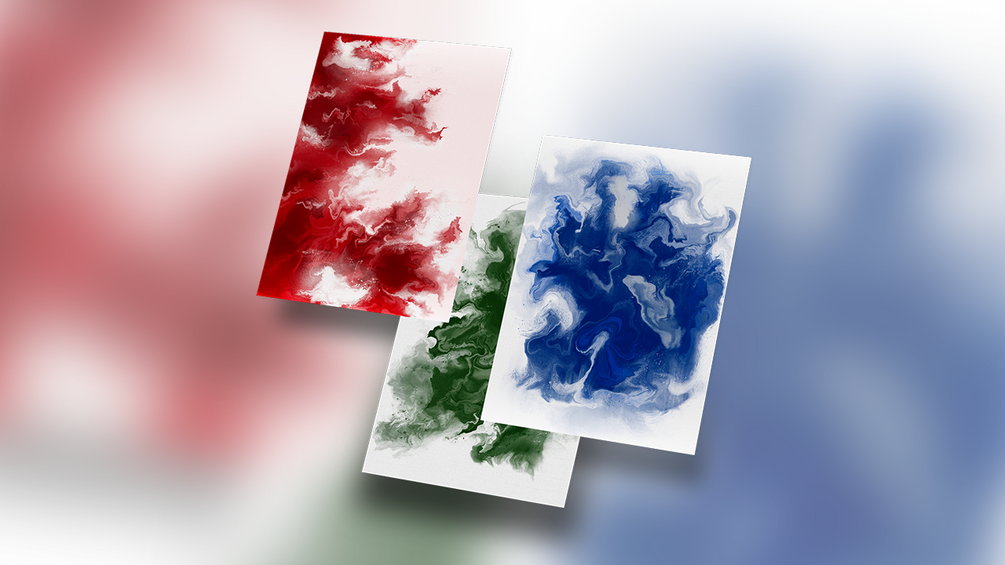 Imagem A2 em 300dpi de 2/3 estudos meus sobre Marmorização digital em Vermelho, Verde e Azul para você imprimir, usar em algum projeto pessoal ou comercial. Você não precisa me dar os créditos, porém ficaria muito feliz se me marcasse no instagram (@dafne.design)! :D